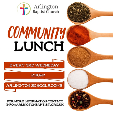 Come and join us for Community Lunch, every 3rd Wednesday of every month at 12:30pm.